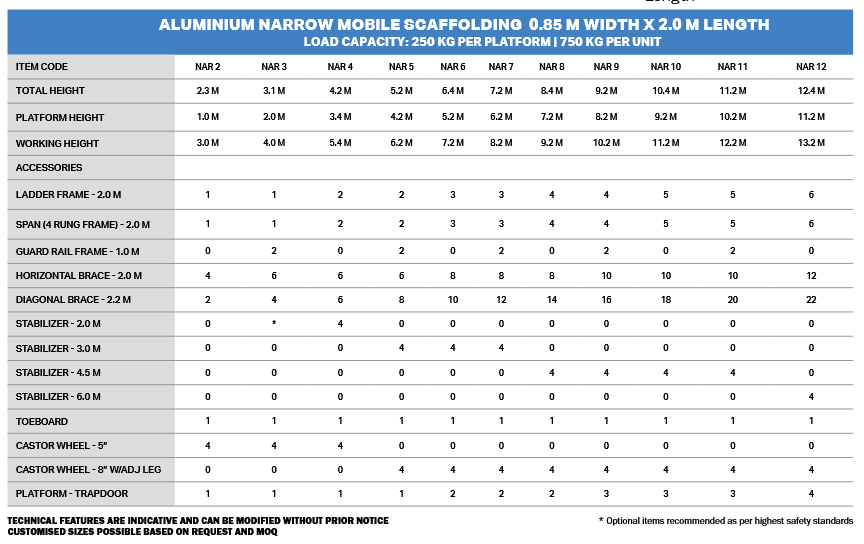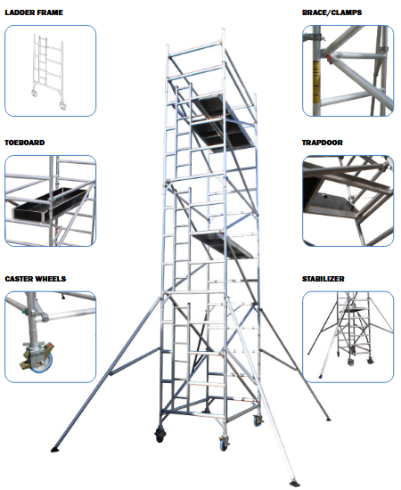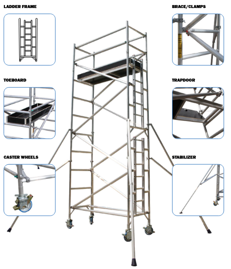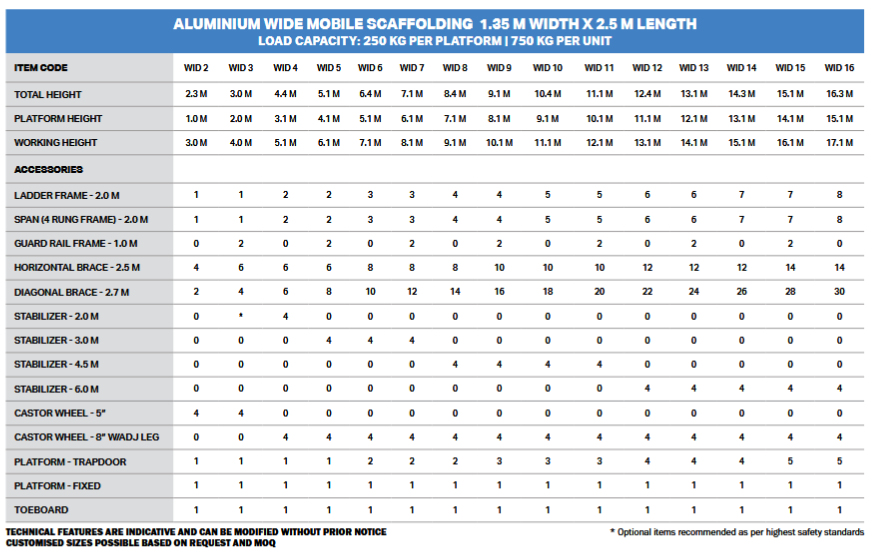 Maximum working height 16m; unit above 10m must be secured to another structure